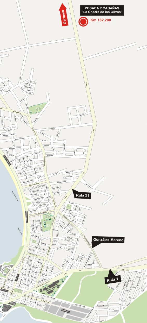 Ruta 21 kilometro 182. A 4 km. del centro de la ciudad de Colonia del Sacramento y a 5 de Playa Arenisca, en una zona de viñedos y frutales.